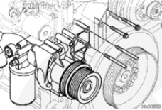 用兩根長螺栓將制冷劑壓縮機(jī)支架安裝到齒輪室上。擰緊螺栓。