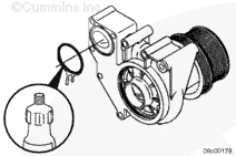 使用清潔的康明斯發(fā)動(dòng)機(jī)機(jī)油潤滑所有水泵螺栓的螺紋和螺栓端頭底部。安裝水泵和兩個(gè)下部螺栓。擰緊螺栓,將水泵固定到位。