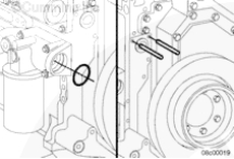 潤滑和安裝新的 O 形密封圈。安裝兩個(gè)導(dǎo)向雙頭螺栓。安裝水泵和3根螺栓。