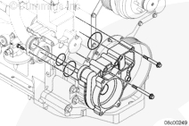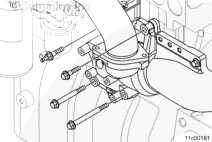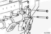拆下兩個(gè)雙頭導(dǎo)向螺柱,然后安裝其余的安裝螺栓。擰緊螺栓。扭矩值: 72 n.m [53 ft-lb]