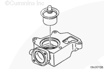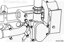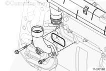 工業(yè)用康明斯ISX和QSX15發(fā)動(dòng)機(jī)使用帶有蓋板或水接頭的節(jié)溫器殼體蓋。如果節(jié)溫器蓋已拆下,將其裝上。擰緊螺栓。