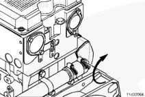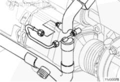 安裝 EGR 冷卻器冷卻液排氣管。將排氣管的剛性部分與 EGR 冷卻器相連,而將柔性部分與 EGR 冷卻器冷卻液回流管相連。