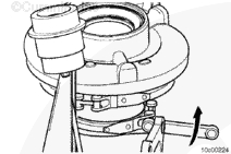 如果吊耳安裝在渦輪增壓器軸承殼中,則吊耳只能用于渦輪增壓器的拆裝操作。它不能用于拆卸排氣歧管或發(fā)動機。這樣做會損壞渦輪增壓器。