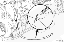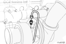 將機油供應(yīng)軟管連接到位于機油濾清器座上的機油供應(yīng)管接頭上。擰緊機油供應(yīng)軟管。