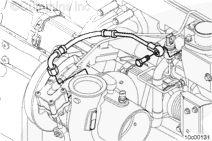 將渦輪增壓器執(zhí)行器冷卻液供應(yīng)管和回流管接頭安裝到電子執(zhí)行器內(nèi)。參考第 10 節(jié)中的步驟 010-041。