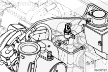 在節(jié)溫器殼體上安裝渦輪增壓器冷卻液回流軟管。緊固空心管接頭。