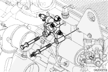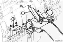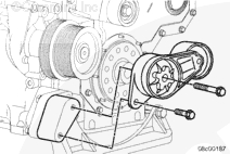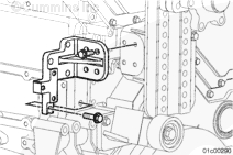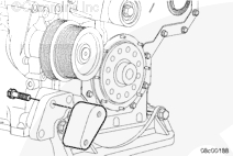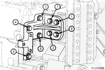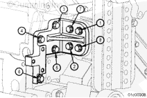 安裝渦輪增壓器防轉(zhuǎn)托架(如果配備)。端部靠在機油冷卻器殼上。此托架需要 1.25 mm [0.049 in] 加長螺釘。擰緊螺栓。