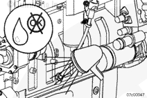 不要在渦輪增壓器冷卻液軟管 O 形圈上使用汽油產(chǎn)品。O 形圈會膨脹從而引起管泄漏。