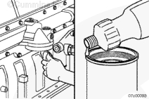在向發(fā)動機中加注機油之前,應(yīng)先加注并安裝機油濾清器。參考步驟 007-013。