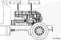 選用適當額定提升能力的吊車,將發(fā)動機提升工具(零件號 3162871)安裝到發(fā)動機吊耳上,以安裝發(fā)動機。