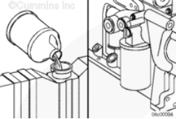將注油泵的供油軟管連接到機油泵的接頭上。使用油筒或容器中清潔的 15W-40 機油為機油泵和發(fā)動機供油。