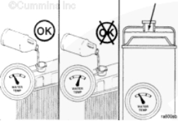 必須正確加注冷卻系統(tǒng)以防出現(xiàn)氣穴,否則可能導(dǎo)致嚴重的發(fā)動機損壞。