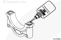如圖所示,在每個主軸承蓋上的 2 個主軸承蓋表面涂上一層 Loctite™ 518 螺紋密封膠。