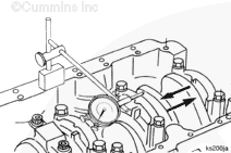 將曲軸推向發動機后部,以安裝前止推軸承;然后將曲軸推向發動機前部,安裝后止推軸承。