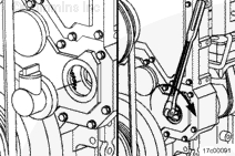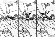 如果工作間隙不滿足技術規范,松開搖臂軸螺釘但不要卸下,按所需的方向旋轉軸使工作間隙處于技術規范內。在所有 6 個制動器搖臂上設定此間隙并進行確認,這一步至關重要。如果沒有完成這一步會損壞發動機。