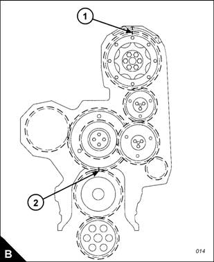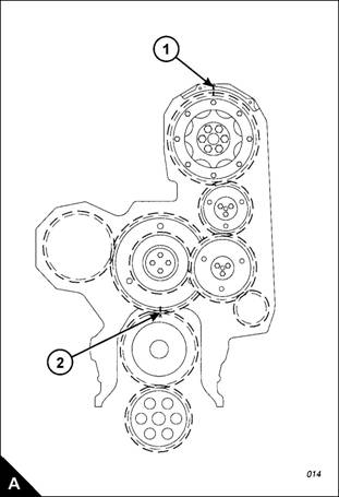 For correct engine timing, a line is provided on the large gear (A) of the compound idler which aligns with a