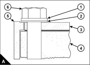 (A), GE50006, and a fabric washer (A2), GE50007, must be fitted to each bolt. Tighten the bolts to a torque