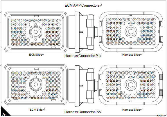 在連接器P1 terminal-70 ECM輸入(開關(guān)+電池)接收電池電壓從