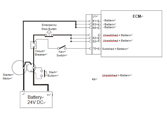 發(fā)動(dòng)機(jī)鑰匙開關(guān)由主機(jī)制造商提供。當(dāng)ECM檢測(cè)電池電壓在輸入,ECM將