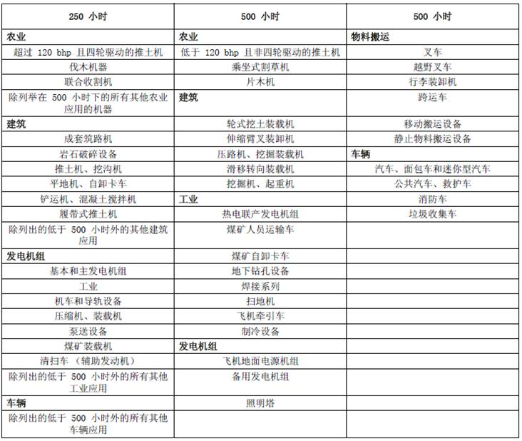 降至250小時。有關(guān)應(yīng)用的信息,請參閱您的設(shè)備供應(yīng)商所提供的手冊,或參考以下表格。如果需要更多的