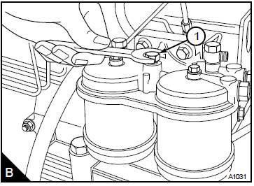 對(duì)于裝配獨(dú)立濾芯的濾清器:松開濾清器座頂部的放氣旋塞(B1)或banjo螺栓。