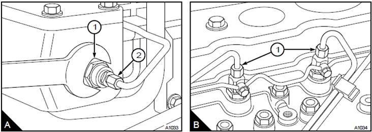 4松開Perkins1000/4/6缸噴油器(B1)的兩個(gè)高壓接頭。