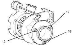 1.從渦輪增壓器(1)的所有孔上拆下全部塑料螺塞。清潔排氣歧管和渦輪增壓器的配合面。清潔渦輪增壓器與供油管組件(6)及渦輪增壓器與回油管組件(9)的配合面。