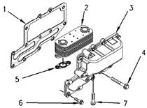 1.清潔機油冷卻器座(9)和機油冷卻器體(4)的配合面。如果拆下了機油冷卻器座(9),清潔機油冷卻器座和缸體的配合面。