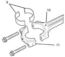 4.從連桿(10)和連桿蓋(11)上拆下軸瓦(9)。