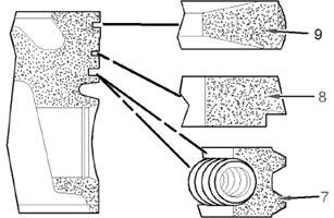 b.將錐形表面的中間活塞環(huán)(8)安裝到活塞的第二個槽中。壓印標記“TOP”必須朝向活塞頂部。