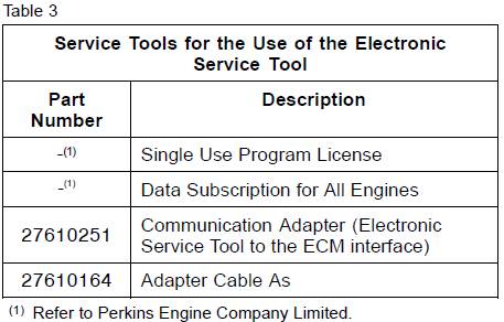 表3列出了所需的Perkins1204e-e44tta和1206e-e66ta柴油發動機服務工具使用電子服務工具。