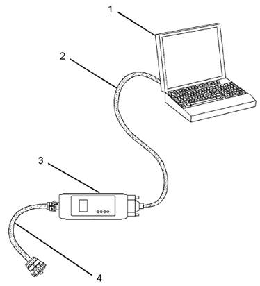 3。連接電纜(4)之間的“數據連接”結束通信適配器(3)和服務工具連接器。