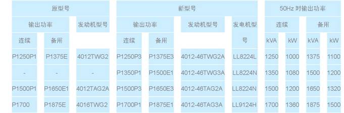 威爾信 1250kVA~1875kVA發(fā)電機(jī)組(原來(lái)由 Perkins4012和 4016系列發(fā)動(dòng)機(jī)驅(qū)動(dòng))有重大設(shè)計(jì)改變,產(chǎn)品類(lèi)型增多,性能進(jìn)一步改善。具體變更見(jiàn)下表: |