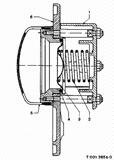 描述:該安全閥由閥蓋、閥瓣、防火絲網等組成,與觀察孔門安裝在一起構成防爆孔門,其開啟壓力由彈簧的預緊力控制。防火絲網旋在防爆孔門的內部,用以防止火星噴出。如果發生曲軸箱超壓,曲軸箱內壓力達到閥門的開啟壓力時,防爆孔門打開,待曲軸箱內壓力恢復正常后,在彈簧回復力作用下,該閥自動關閉。