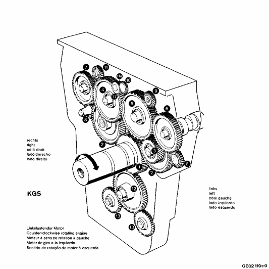 7、凸輪軸驅動齒輪     8、主機冷卻水泵驅動齒輪    9、供油泵驅動齒輪