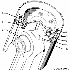 閥門夾頭   6、上彈簧座    7、缸頭        8、下彈簧座