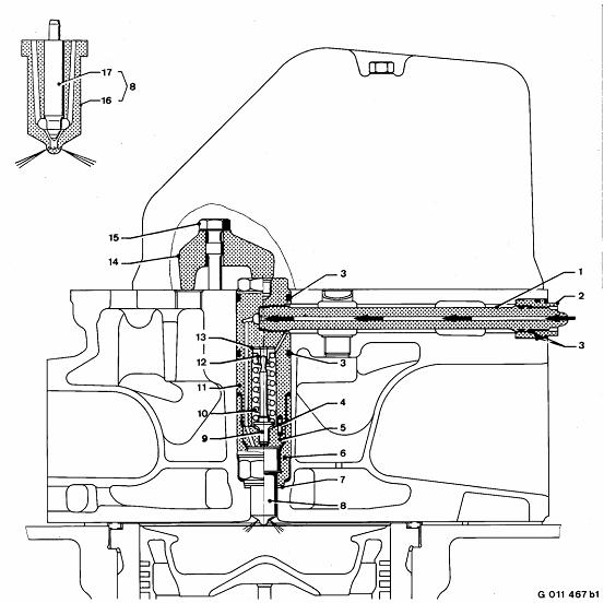 3 密封圈                                  14 活塞冷卻油噴嘴