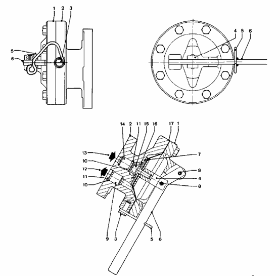 1、閥蓋    2、彈簧    3、閥瓣    4、O形圈    5、防火絲網    6、孔門端蓋