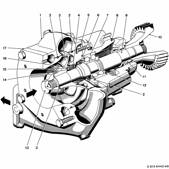 12、潤滑油泵惰轉齒輪            13、潤滑油泵驅動齒輪