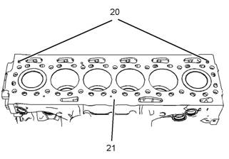 20.如有必要,從缸蓋上卸下水溫調(diào)節(jié)器。有關(guān)正確的步驟,請參閱《Perkins柴油機(jī)Perkins柴油機(jī)拆解和組裝》,“水溫調(diào)節(jié)器-拆卸和安裝”。