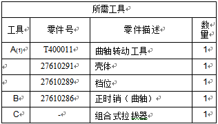 注:安裝工具(B)時不要使用過大的力量。在修理過程中不要使用工具(B)固定曲軸。