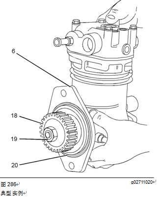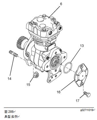 14.如果發動機在空氣壓縮機后部配備一個液壓泵,安裝該液壓泵。有關正確的步驟,請參閱OEM信息。