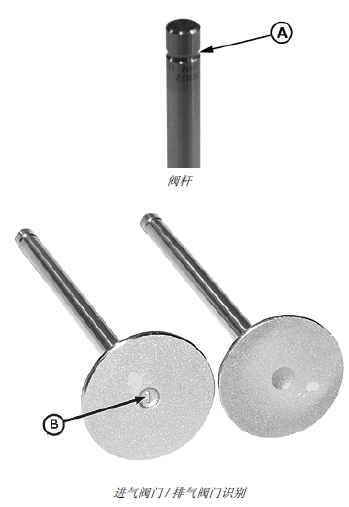 注意: 進(jìn)氣閥門的氣門頭外徑較大,氣門頭上有一個凸起的 “I” 標(biāo)記。排氣氣門頭無磁性。