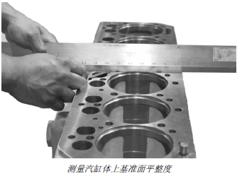 使用 D05012ST 精密直角尺和塞尺檢查汽缸體頂部的基準(zhǔn)面平度。如果平整度不符合技術(shù)規(guī)格的要求,可刮研汽缸體上基準(zhǔn)面。