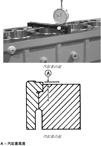 注意: 由于密封圈和 O 形環(huán)未壓縮,與正常情況相比,汽缸套會突出超過汽缸體頂部。