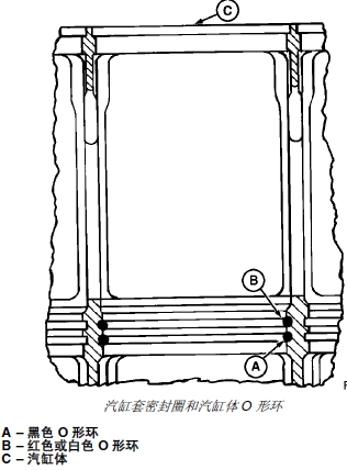 重要提示: 汽缸套在未裝 O 形環(huán)或密封圈時,應(yīng)該能夠用手輕輕轉(zhuǎn)動。如果不能轉(zhuǎn)動,需要拆下汽缸套并清潔汽缸體。