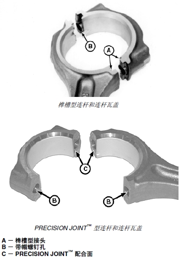 重要提示: 切勿劃傷連桿和連桿瓦蓋的連接面。對于確保 PRECISION JOINT™ 連桿正確安裝來說,這是非常重要的。禁止用鋼絲刷或其他工具刷連接面,必須保護互鎖配合面,不能留下任何碎屑。
