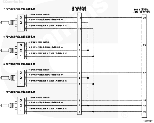 7 號氣缸排氣溫度傳感器電路 - QSK60 船用發動機