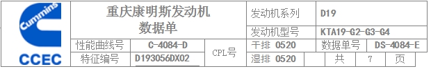 康明斯發動機KTA19-G2-G3-G4技術規格數據單
