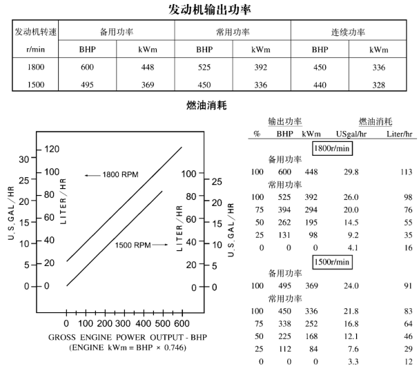 燃油消耗 L/h(U.S.gal./h)                   133(35.2)                                 120(31.7)